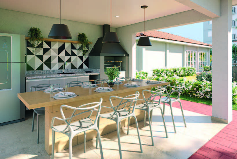 Espaço gourmet com churrasqueira, perfeito para confraternizações e refeições deliciosas.